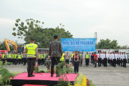 Polres Klaten menggelar Apel Gelar Pasukan Operasi Lilin Candi 2025 di Lapangan KSDC Mapolres Klaten sebagai bentuk kesiapan pengamanan perayaan Natal 2025 dan Tahun Baru 2026, Jumat (19/12/2025). Ape...